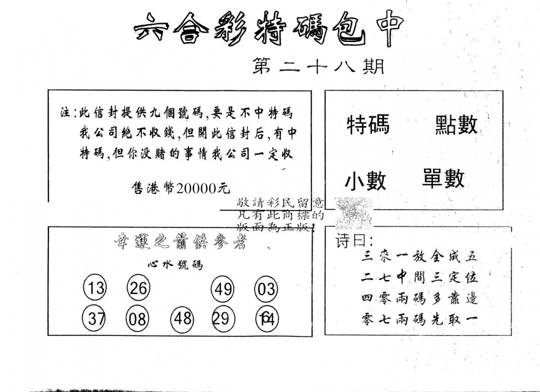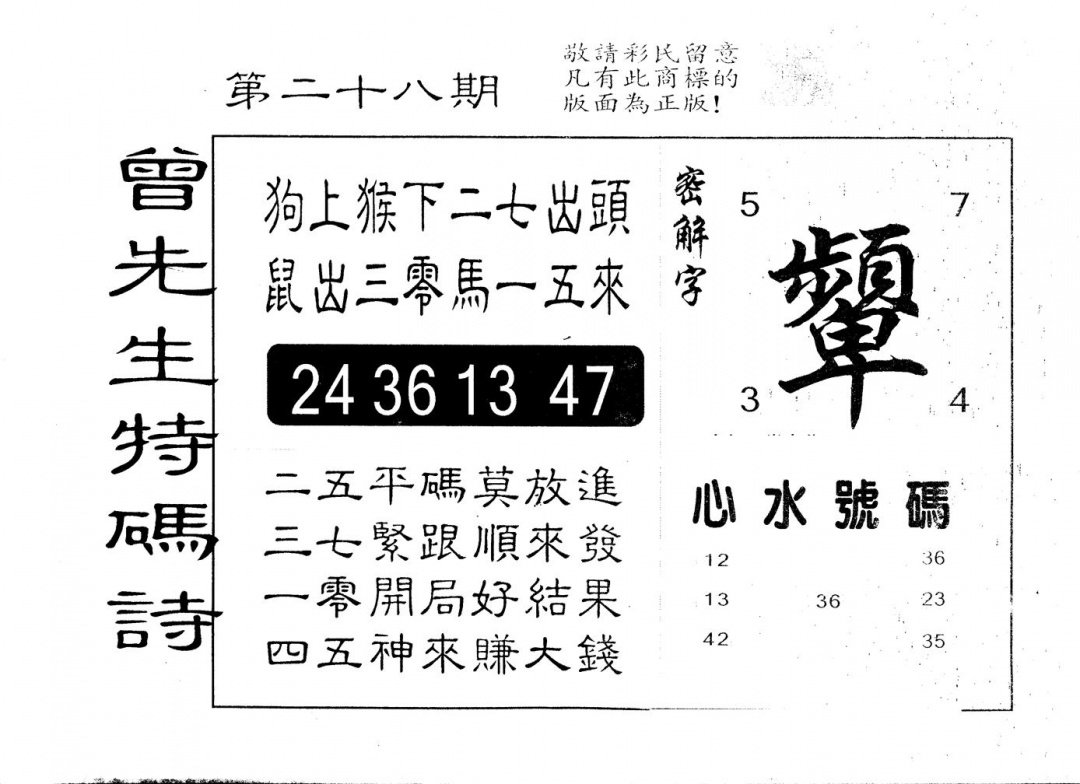 另版曾道人特码诗