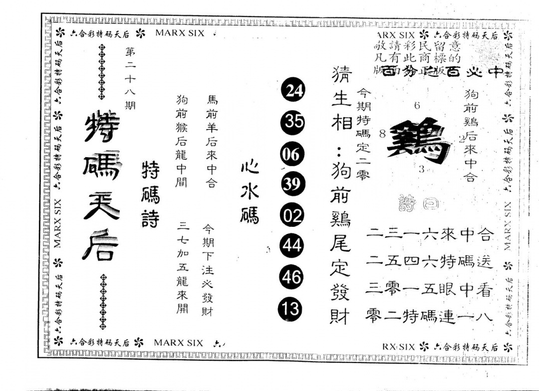 另版特码天后