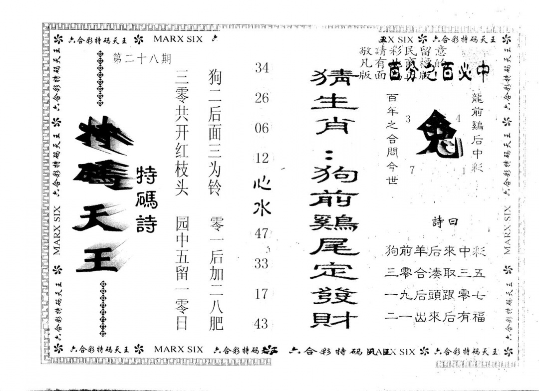 另版曾道人特码诗